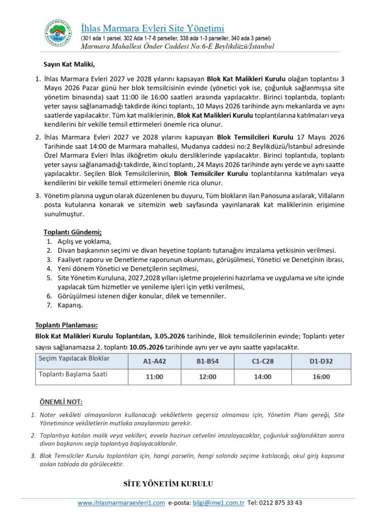 BLOK KAT MALİKLERİ GENEL KURUL ÇAĞRISI
